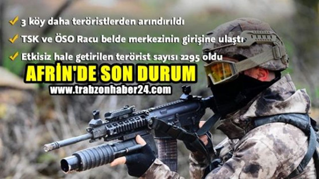 Türk Silahlı Kuvvetleri'nin Suriye'nin Halep kentine bağlı Afrin kırsalında terör örgütlerine karşı başlattığı Zeytin Dalı Harekatı'nda 41. güne girildi. Şu ana kadar 2 bin 295 terörist etkisiz hale getirildi, 114 nokta teröristlerden arındırıldı.