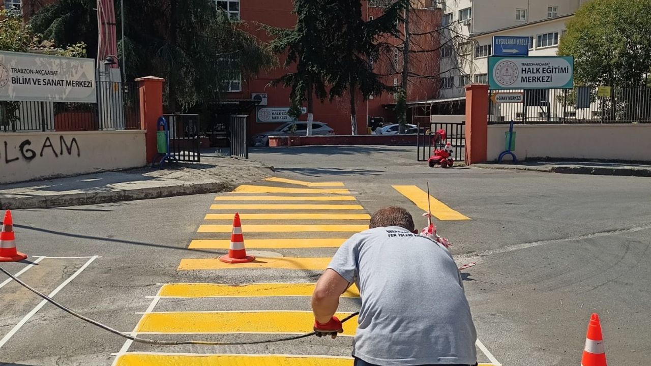 Özellikle okulların açılmasına kısa bir süre kala, öğrencilerin güvenliği için okul önlerinde boyama ve yenileme çalışmaları titizlikle sürdürülüyor.