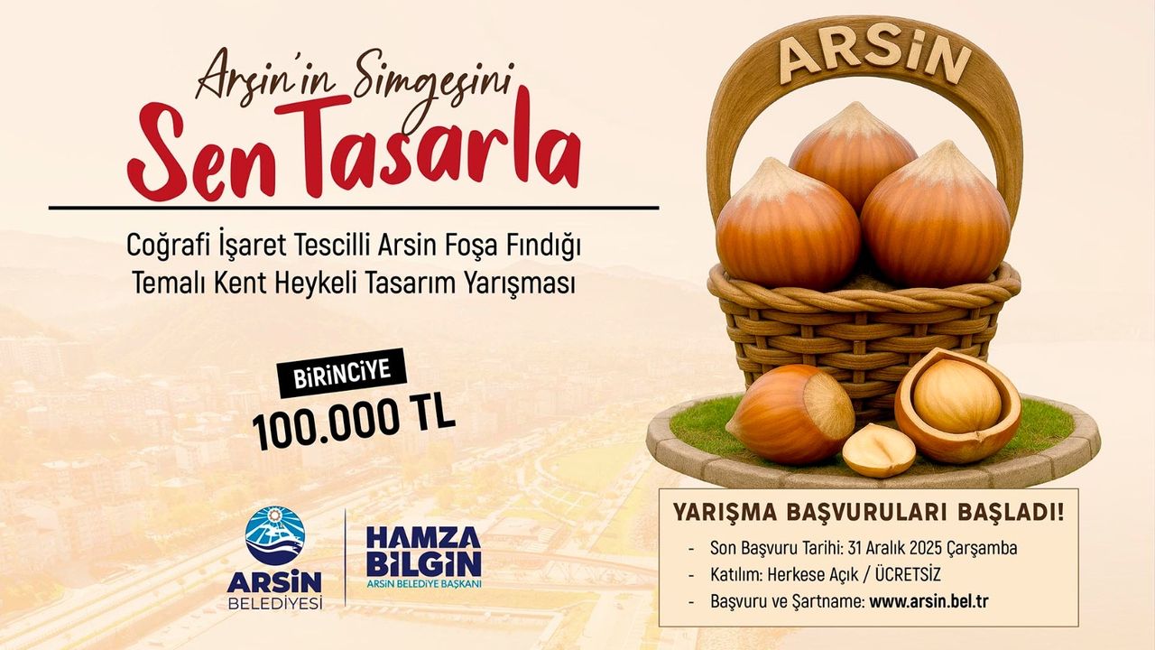 “Arsin’in Simgesini Sen Tasarla” başlığıyla gerçekleştirilen “Coğrafi İşaret Tescilli Arsin Foşa Fındığı Temalı Kent Heykeli Tasarım Yarışması” kapsamında, Arsin’in giriş ve çıkış noktalarında sergilenecek özgün heykel tasarımları seçilmesi hedefleniyor.