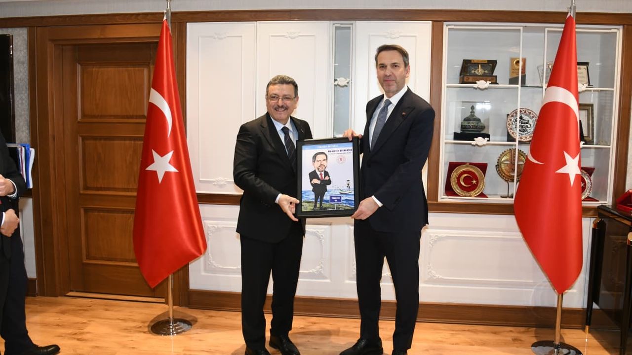 Büyükşehir Belediyesi’ni ziyaret eden Bakan Alparslan, karikatür sanatçısı Tamer Küçük’ün çizdiği karikatürü Başkan Ahmet Metin Genç’ten alınca büyük bir şaşkınlık yaşadı. Ahmet Metin Genç’ten karikatürü alan Bakan Alparslan, çok mutlu olduğunu belirterek sanatçıya da teşekkür etti.
