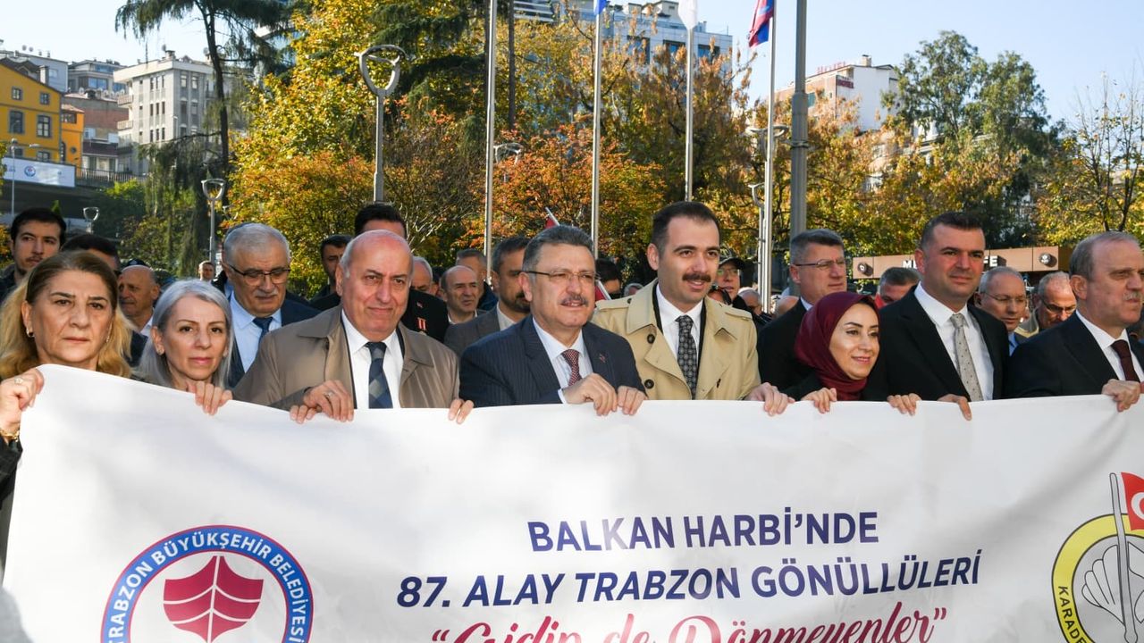Trabzon Büyükşehir Belediye Başkanı Ahmet Metin Genç, Trabzon Büyükşehir Belediyesi ve Karadeniz Yazarlar Birliği iş birliğinde, Balkan Harbi sırasında 1912 yılında Gülcemal Vapuru ile yola çıkan 87. Alay bünyesinde yer alan Trabzon Gönüllüler Taburu’nun 511 şehidini anmak amacıyla düzenlenen 'Gidip de Dönmeyenler' adlı etkinliğe katıldı. Etkinlik, Kahramanmaraş Caddesi’nden Kalepark'a gerçekleştirilen kortej yürüyüşü ile başladı. Programa ayrıca; Trabzon Vali Yardımcısı Hacı Osman Hökelekli, Karadeniz Teknik Üniversitesi Rektörü Prof. Dr. Hamdullah Çuvalcı, İl Kültür ve Turizm Müdürü Tamer Erdoğan, Trabzon Şehit Meriç Alemdar Polis Meslek Eğitim Merkezi Müdürü İsmail Akıntürk, İran İslam Cumhuriyeti Trabzon Başkonsolosu Naser Mohebati, MHP İl Başkanı Tolgay Sivrikaya, AK Parti Ortahisar İlçe Başkanı Seyit Hisoğlu, AK Parti Kadın Kolları Başkanı Ayfer Cihan, Karadeniz Yazarlar Birliği Başkanı Sebahattin Saruhan, Türkiye Harp Malulü Gaziler, Şehit Dul ve Yetimleri Derneği Trabzon Şubesi Başkanı Ahmet Tezcan, Trabzon Şehit Aileleri Sosyal Yardımlaşma ve Dayanışma Derneği Başkanı Şeref İşler, ilçe belediye başkanları ile vatandaşlar katıldı.