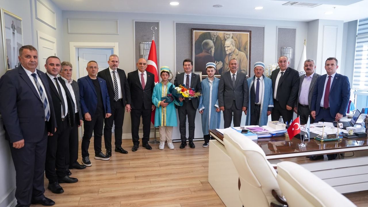 Geçtiğimiz hafta 38. Ahilik Haftası’nı kutlayan Trabzon Esnaf ve Sanatkarlar Odaları Birliği (TESOB), yılın ahileri ile birlikte Ortahisar Belediye Başkanı Ahmet Kaya’yı ziyaret etti. Ziyarete TESOB Başkanı Metin Kara, Trabzon Ticaret İl Müdürü Kasım Tiryaki, TESOB Yönetim Kurulu üyeleri Mustafa Özcelep, Mustafa Pehlivan, Temel Korkmaz, Mehmet Coşkun Zihni, Trabzon Kuyumcular ve Saatçiler Esnaf ve Sanatkarlar Odası Başkanı Ali Yazıcı, Akçaabat Esnaf ve Sanatkarlar Odası Başkanı Yaşar Sivrikaya, Türkiye’de ve Trabzon’da 2025 Yılının Ahisi seçilen taş oyma ustası Hayri Dertlioğlu, Türkiye’de ve Trabzon’da Yılın Kalfası seçilen hasır işlemeci Metehan Arslan ve Trabzon’da Yılın Çırağı seçilen ayakkabı imalatçısı Eren Bahadır katıldı.