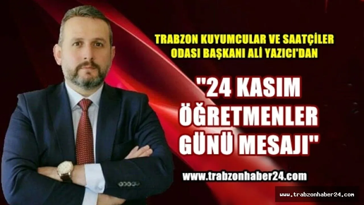 Trabzon Kuyuncular ve Saatçiler Odası Başkanı Ali Yazıcı , 24 Kasım Öğretmenler Günü dolayısıyla mesaj yayımladı.