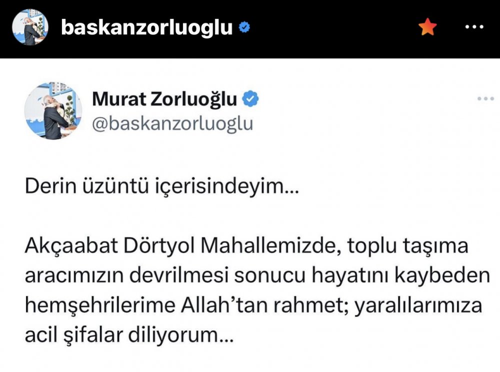 Akçaabat Dörtyol Mahallemizde, toplu taşıma aracımızın devrilmesi sonucu hayatını kaybeden hemşehrilerime Allah’tan rahmet; yaralılarımıza acil şifalar diliyorum…
