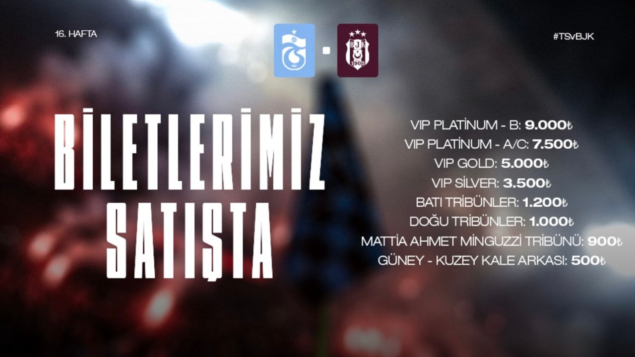 Trabzonspor, Trendyol Süper Lig Mehmet Ali Yılmaz Sezonu’nun 16. haftasında Beşiktaş ile oynayacağı maçın biletleri satışa çıktı.