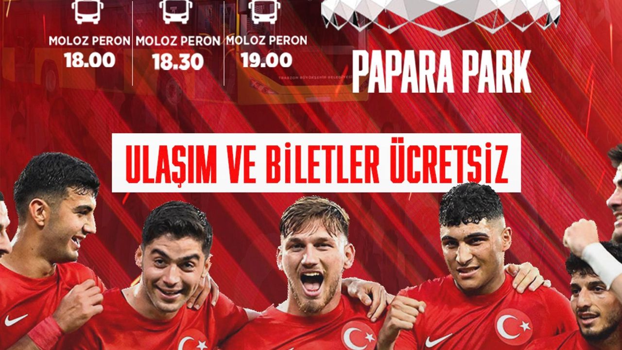 Trabzon Büyükşehir Belediyesi, Ümit Milli Takımı’nın bu akşam (9 Eylül Salı) saat 20.00’de Akyazı Papara Park Stadyumu’nda Hırvatistan ile karşılaşacağı maç için ücretsiz otobüs seferleri düzenleyecek. Otobüsler, saat 18.00’den itibaren Ortahisar ilçesi Moloz mevkiinden (sahil peron) hareket edecek.
