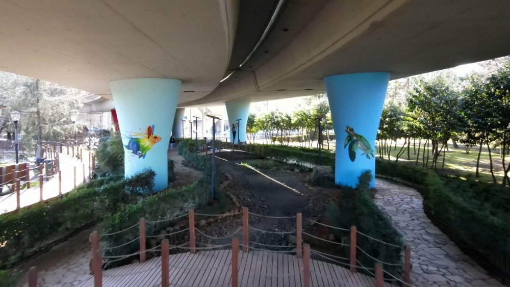 Mavi zemine boyanan viyadük ayaklarına ressamlar tarafından yapılan Atatürk potresi, Trabzonspor logosu, tavşan, kedi, kaplumbağa, karaca ve yunus balığı figürleri özellikle çocukların ilgisini çekiyor. Yaz-kış vatandaşların en çok uğradığı mekânların başında gelen Ekopark’a yapılan resimler ziyaretçiler tarafından da beğenildi. Ayrıca, viyadük ayaklarının bulunduğu alanda yapılan peyzaj düzenlemesiyle birlikte Ekopark daha yeşil bir görünüme kavuşturuldu.