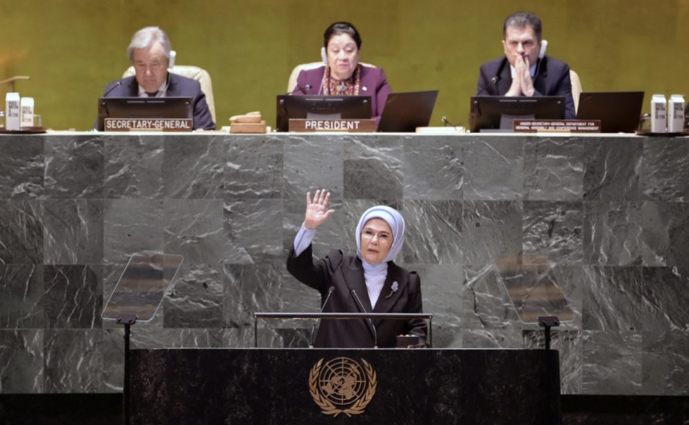 Emine Erdoğan, BM Genel Kurulundaki Sıfır Atık Özel Oturumu'nda yaptığı konuşmada, “Türkiye olarak küresel hiçbir meseleye kayıtsız kalmadığımız gibi çevre sorunlarında da çözümün bir parçası olma kararlığımızı sürdürüyoruz” dedi.