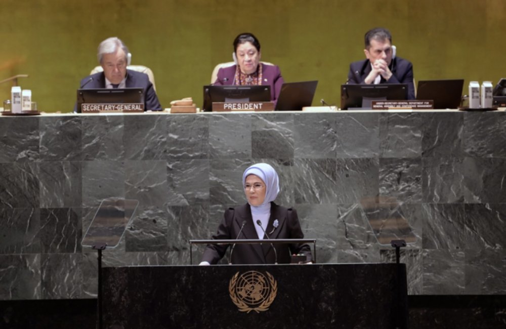 Emine Erdoğan, BM Genel Sekreteri Antonio Guterres ile birlikte, BM 77. Genel Kurul Başkanı tarafından düzenlenen "sıfır atık" konulu, eş sunucu 105 ülkenin yer aldığı üst düzeyli etkinlikte katılımcılara hitap etti.
