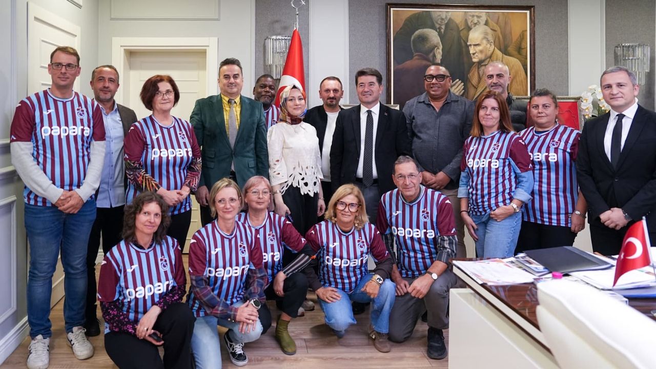 Ziyaretin sonunda misafir öğretim görevlileri, proje sürecinde sağladığı destek ve misafirperverliği için Başkan Kaya’ya teşekkür etti. Başkan Kaya, heyet üyelerine Trabzonspor forması hediye etti.