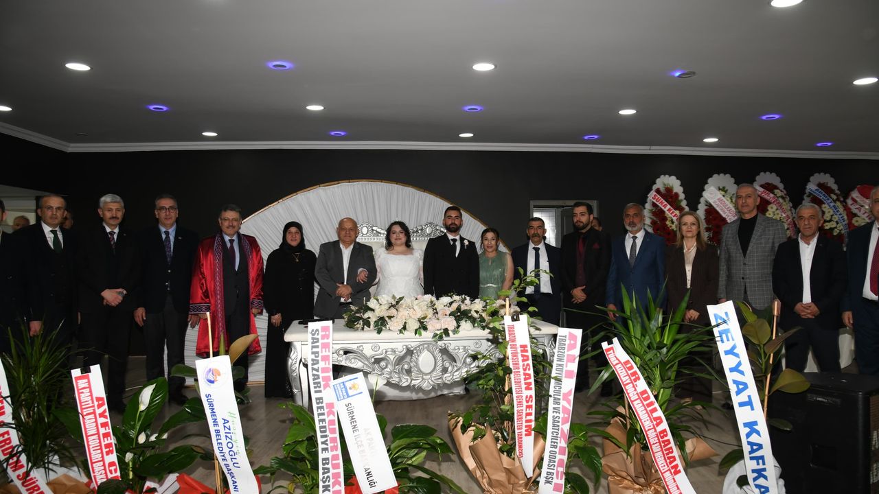 Araklı Belediye düğün salonunda gerçekleşen düğün töreninde çiftlerin nikahını Trabzon Büyükşehir belediye başkanı Ahmet Metin Genç kıyarken şahitliklerini ise Araklı Belediye Başkanı Hüseyin Avni Coşkun Çebi,Sürmene Belediye başkanı Hüseyin Azizoğlu,Çaykara Belediye başkanı Hanefi Tok,Köprübaşı Belediye başkanı Ali Aydın,Ortahisar Belediye başkan yardımcısı Murat Özçilingir ,Ak Parti Araklı İlçe Başkanı Ahmet Serdan,Araklı MHP İlçe Başkanı Metin Hacıhasanoğlu,Anahtar Parti Sürmene İlçe Başkanı Ali Özdemir,MHP Of İlçe Başkanı Hüseyin Ayaz ,Hakim Mehmet Altıntaş ,LEGDER - Lösemi ve Engelli Gönüllüleri Derneği Yönetim Kurulu Başkanı Melek Çakır ,Basın İlan Kurumu Trabzon Bölge Müdürü Ali Nuhoğlu,Ak Parti Trabzon İl Gençlik Kolları Başkanı Mahmut Çavuş yaptı.