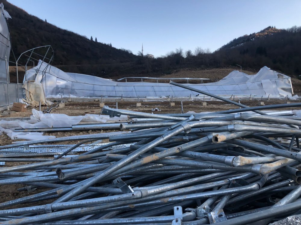 Mutlu Köy Projesinin inşaatı devam ederken kar yağışı sebebiyle projedeki seraların yıkıldığını gördük.