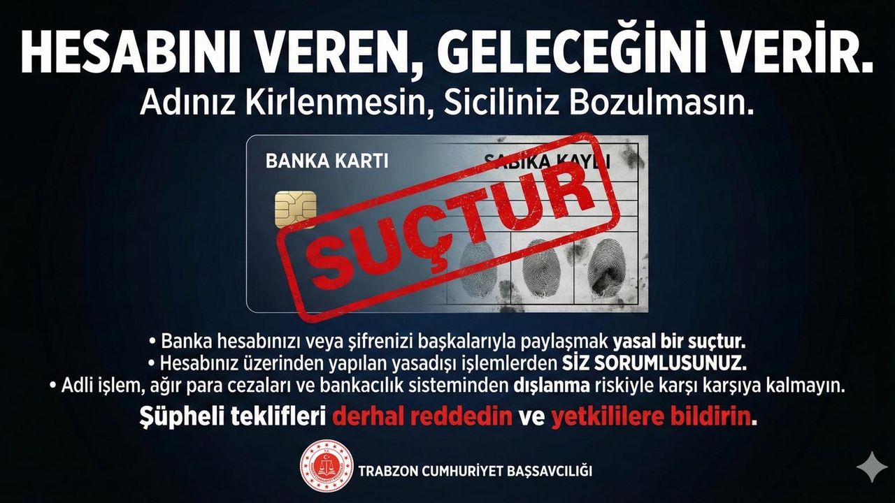 Trabzon Cumhuriyet Başsavcılığınca yürütülen soruşturmalarda; vatandaşların ve özellikle gençlerin önemli bir kısmının, eylemin hukuki ve cezai boyutlarını tam olarak öngöremeden, kısa vadeli kazanç vaatlerine aldanarak banka hesaplarını üçüncü kişilere kullandırmaları nedeniyle şüpheli veya sanık durumuna düştükleri ve haklarındaki yargılama sonucunda mahkemelerce 3 yıldan 10 yıla kadar hapis ve 5.000 güne kadar adlî para cezasına hükmolunabilmektedir. Bu durum, meseleyi yalnızca adli bir süreç olmaktan çıkarıp, vatandaşların ve özellikle gençliğin korunmasına yönelik önleyici tedbirlerin ivedilikle alınmasını gerektiren bir toplumsal sorumluluk hâline getirmiştir.