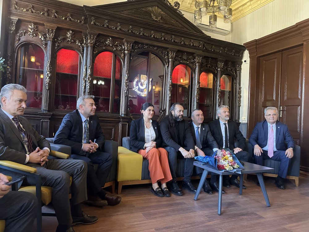 Yavuz Aydın, Aslan Güner, Serpil Akçay, Tahsin Akyüz, Akın Çelik, Bülent Arslan, İl Kadın Politikaları Başkanı Fatma Arıcı, Ortahisar İlçe Başkanı Erdal Uzun'un yer aldığı heyet TGC Başkanı Ersen Küçük ile bir araya geldi.