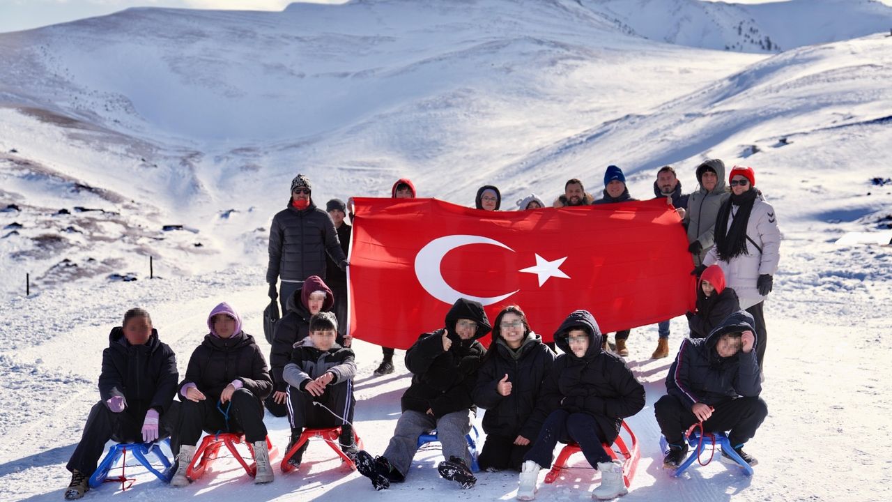Kızakla kayak yapan ve kartopu oynayan çocuklar gönüllerince eğlenerek unutulmaz bir gün yaşadı.