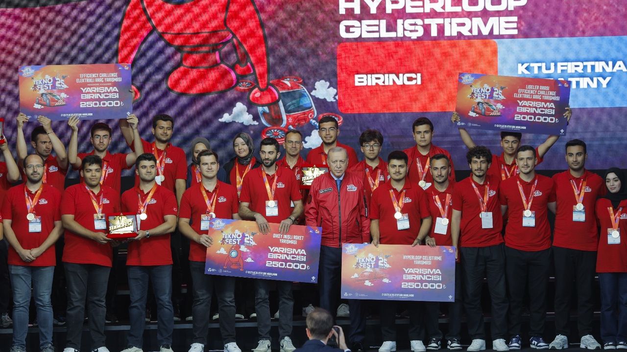 12 üniversite takımı arasından zirveye çıkmayı başaran Fırtına Creatiny Takımı’na ödülünü, bugün TEKNOFEST 2025 etkinliğine katılan Cumhurbaşkanı Recep Tayyip Erdoğan takdim etti ve KTÜ’lü öğrencilere başarılar diledi.