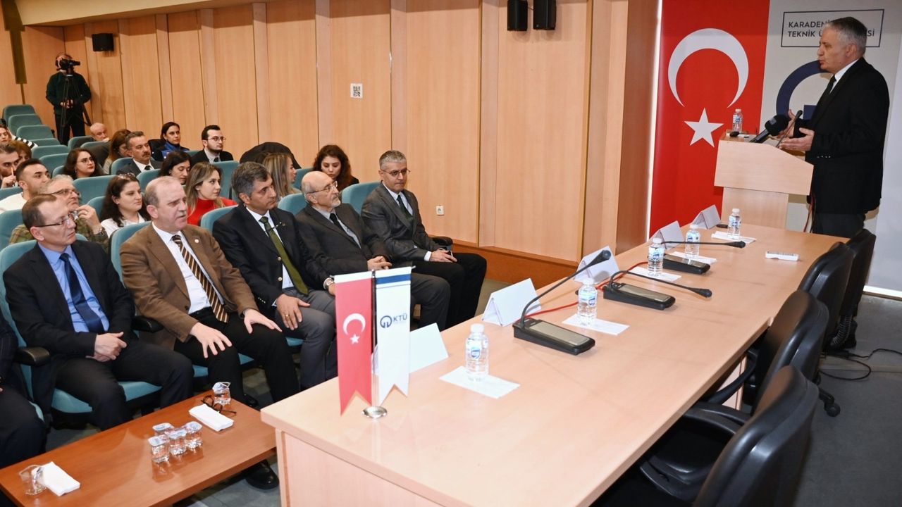 KTÜ Rektörü Prof. Dr. Hamdullah Çuvalcı katılımcıları selamlayarak başladığı konuşmasında, 6 Şubat depremlerinin üçüncü yılında yaşanan büyük yıkıma dikkat çekerek, depremin bir kültür meselesi olduğunu, doğru zemin seçimi ve bilimsel planlamanın can kayıplarını azaltmada belirleyici rol oynadığını ifade etti.