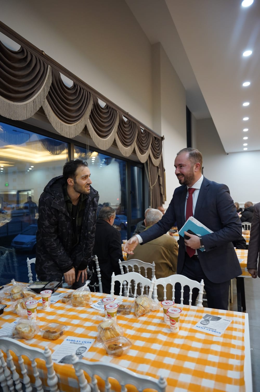 Milletvekili Aday Adayı Kubilay Çiçek Yomra Kültür Merkezi’nde yaklaşık 500 kişinin katıldığı iftar programında katılan tüm misafirlerinin masalarına tek tek giderek sohbet etti.