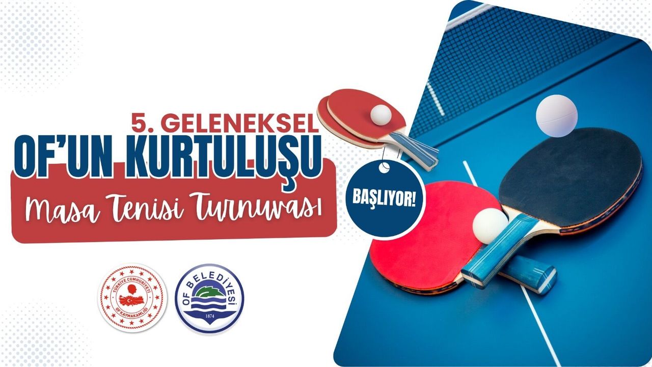Of Kaymakamlığı ve Of Belediyesi iş birliğiyle düzenlenen Geleneksel Masa Tenisi Turnuvası, bu yıl beşinci kez spor severlerle buluşuyor. Özel bir takvimle planlanan turnuva, 28-29 Mart tarihlerinde gerçekleştirilecek.