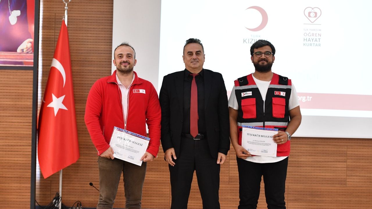 Eğitimin sonunda Başkan Yardımcısı İskender, eğitimi gerçekleştiren Kızılay personeline teşekkür belgesi verdi.