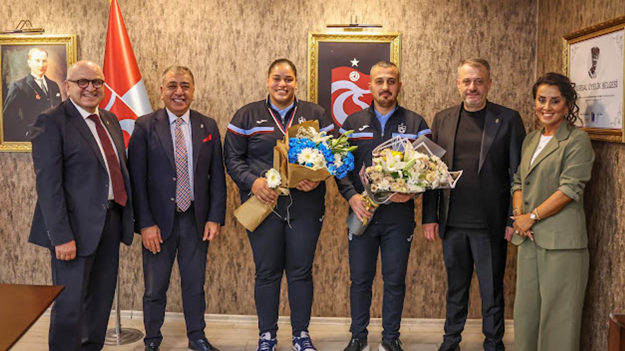 Ziyarette Trabzonspor Genel Sekreteri Sami Karaman ve Genel Sayman Derviş Köz ile bir araya gelen sporcu, Amatör Branşlar Koordinatörümüz Osman Arz ve antrenör Muhammet Çat da eşlik etti.