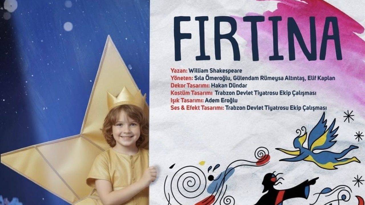 Devlet Tiyatroları ile Trabzon Aile ve Sosyal Hizmetler İl Müdürlüğü’nün, yürütücülüğünü üstlendiği bir ortak yapım olan "sahnede parlayan küçük yıldızlar" adlı proje kapsamında sergilenecek olan "Fırtına" adlı oyunun, tek perde olduğu belirtildi.