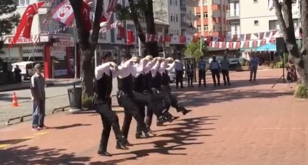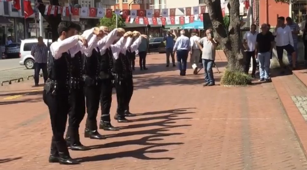 Atatürk Anıtına çelen koyulması saygı duruşu ve İstiklal marşının okunmasından sonra Sürmene Folklor Ekibi gösterisi ile mest etti .