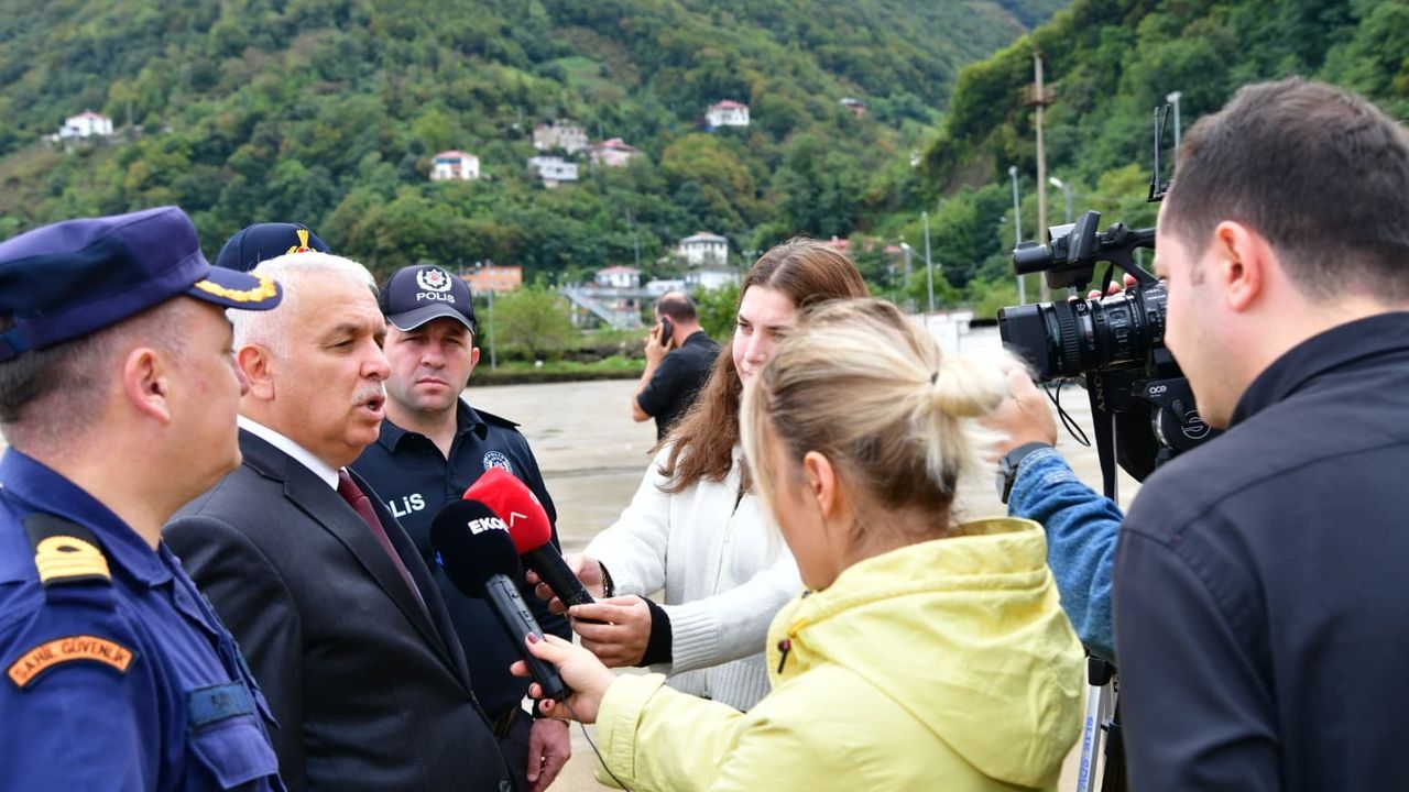 Vali Aziz Yıldırım, imha çalışmalarını yürüten güvenlik güçlerini ziyaret ederek Sahil Güvenlik Doğu Karadeniz Grup Komutanı SG Binbaşı Aytaç Bayırlı ve diğer yetkililerden bilgi aldı.