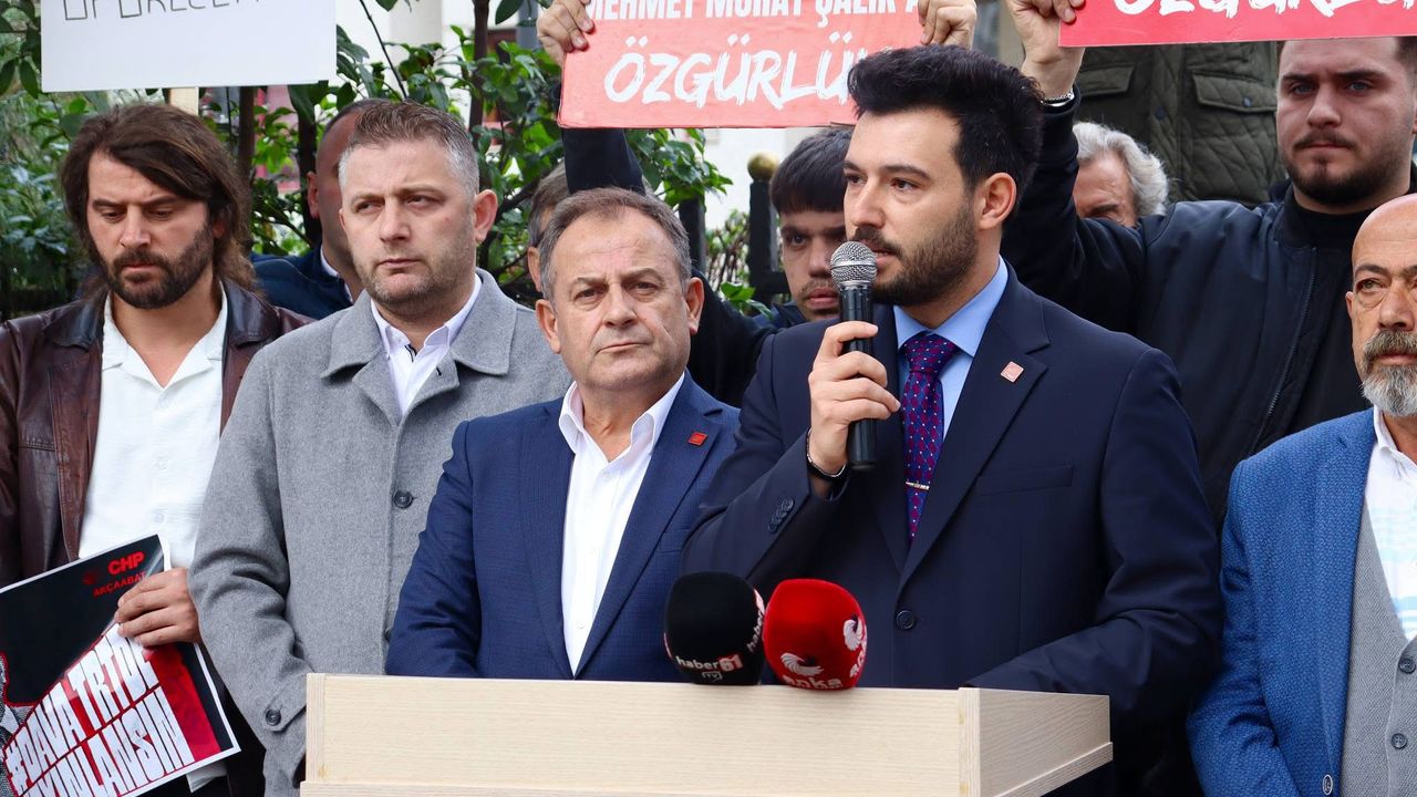 TRT Binası önünde açıklamalarda bulunan CHP Trabzon Akçaabat İlçe Başkanı Emre Şahin Köroğlu Ekrem İmamoğlu’na yönelik iddianamenin, 'Bu davalar tam olarak Cumhurbaşkanı adayımız Sayın Ekrem İmamoğlu'nun önünü kesme davasıdır.' ifadelerini kullandı.