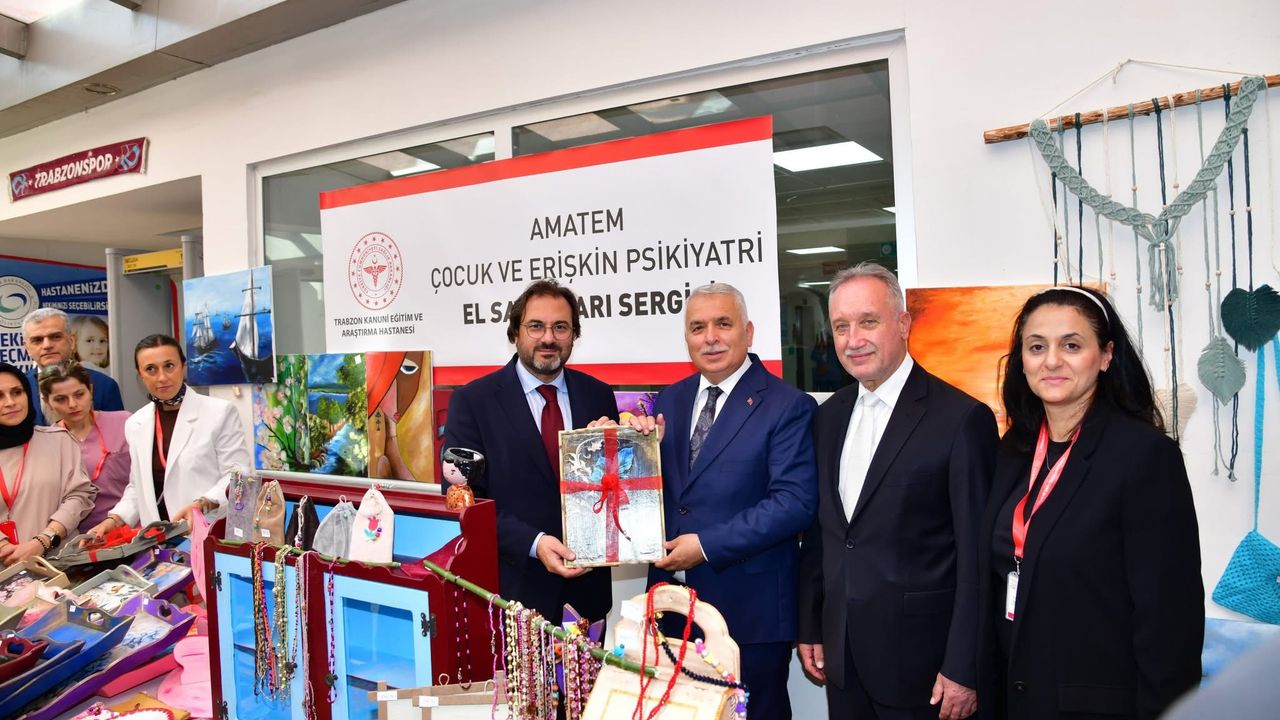 Tedavi gören bireylerin el emeğiyle hazırladığı tablolar, seramikler ve süs eşyalarının yer aldığı sergide, sanatın tedavi sürecindeki olumlu etkilerine dikkat çekildi.
