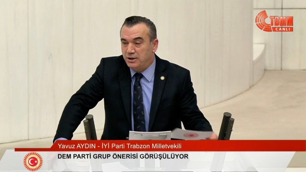 Genel Kurul kürsüsünden konuşan Aydın, DEM Parti’nin toplum sorunlarını kimlik siyasetiyle okuduğunu savunarak “Önergeyi veren DEM Parti’nin dili, her zaman olduğu gibi vatandaşımızın canını yakan sosyal meseleleri alıp kimlik siyasetine bağlamaya, ülkeyi ayrıştıran bir yerden okumaya meyletmektedir.” ifadelerini kullandı. Aydın, bu anlayışa karşı olduklarını vurgulayarak “Açlığın dili olmaz, yoksulluğun kimliği olmaz, yoksunluğun partisi olmaz.” sözleriyle tepki gösterdi.